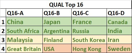 우선 대진은 아래와 같이 편성되었습니다. A 그룹: 중국, 남아프리카 공화국, 말레이시아, 영국 B 그룹: 일본, 아르헨티나, 핀란드, 미국 C 그룹: 프랑스, 러시아, 한국, 홍콩 D 그룹: 캐나다, 인도, 이란, 스웨덴