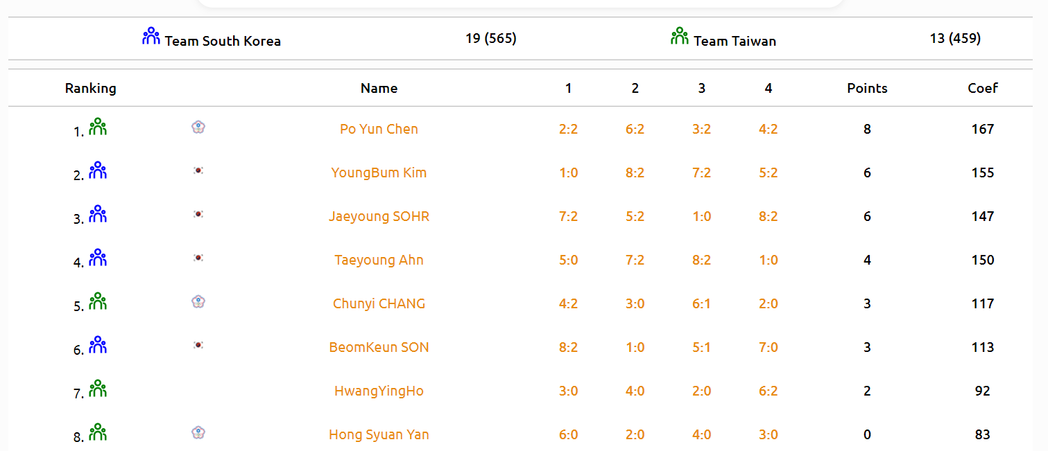 대만의 Po Yun Chen 선수가 4승을 하며 1등을 하였으나,